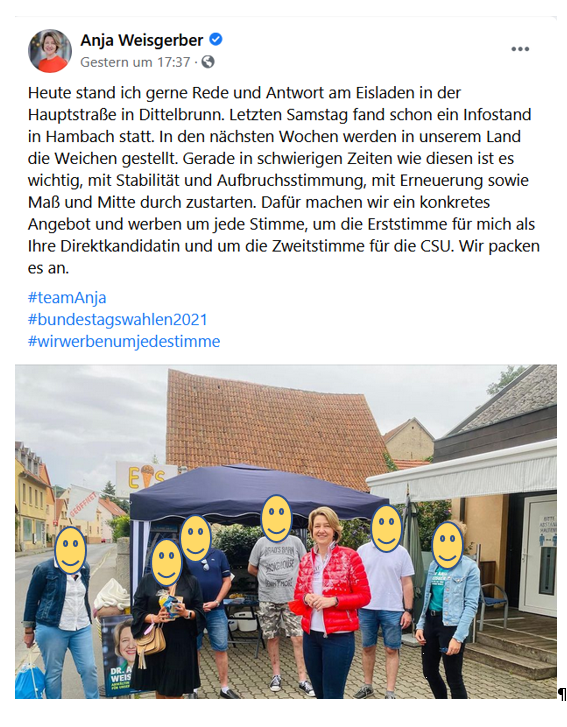 Diesen Post hat „unsere“ direkt gewählte Bundestagsabgeordnete für Schweinfurt und Kitzingen Dr. jur. Anja Weisgerber vor einiger Zeit verfasst.