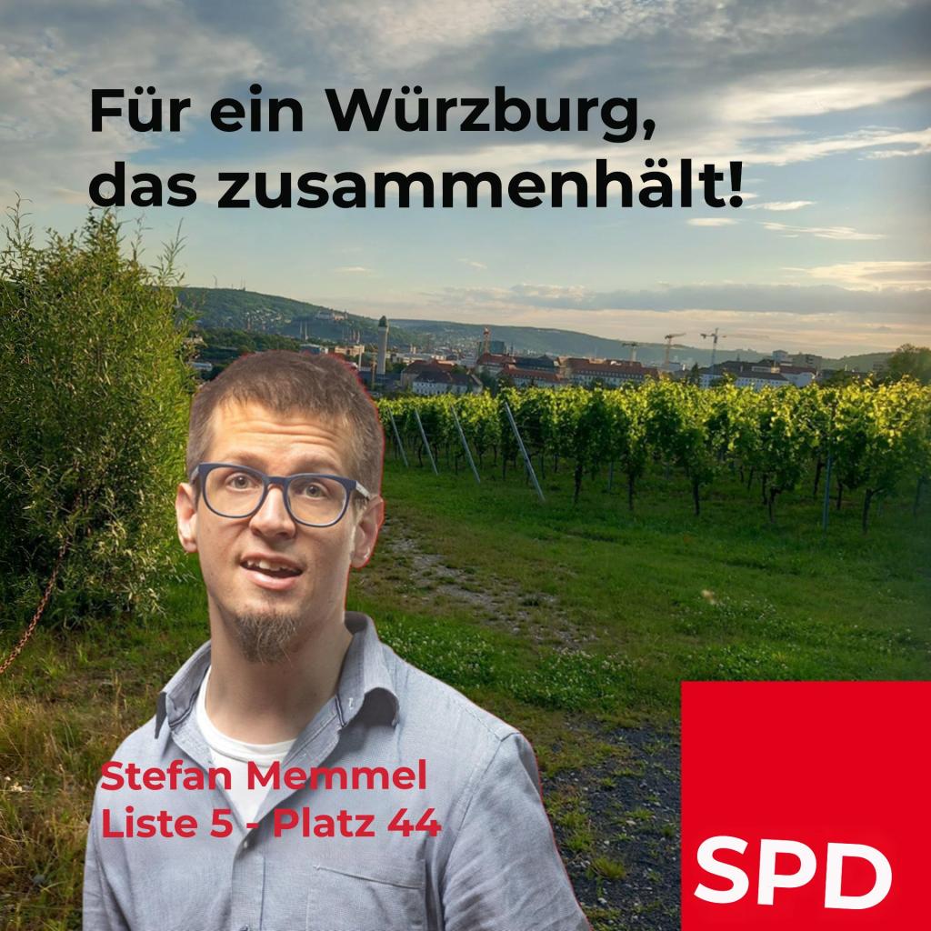 Deshalb bitte ich um ein Listenkreuz bei der SPD und für mich ganz persönlich um drei Stimmen auf Listenplatz 44 – Liste 5. Für ein Würzburg, das zusammenhält!